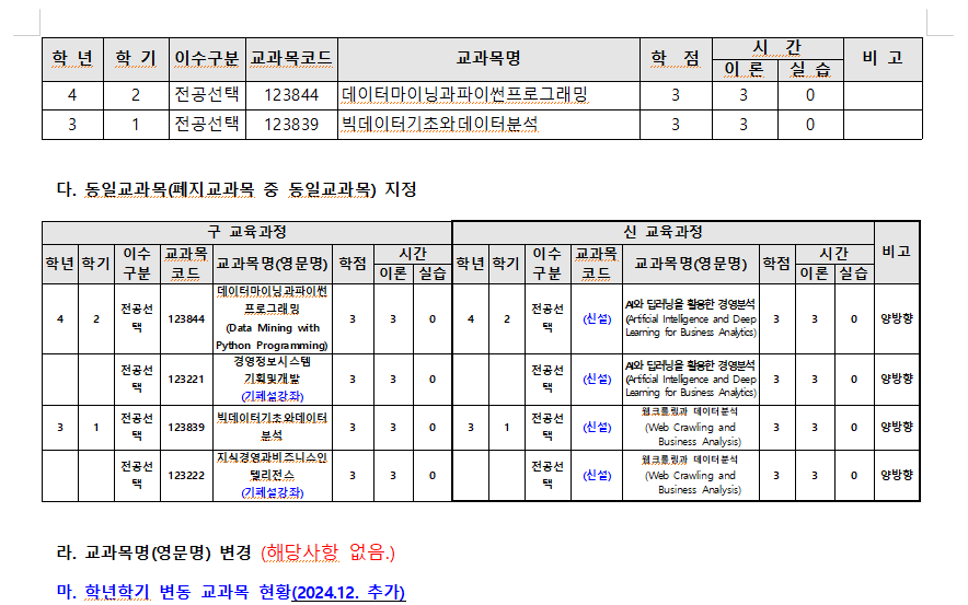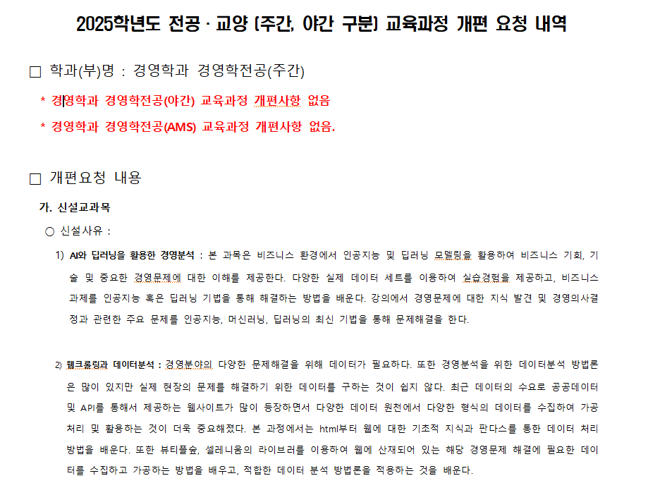 (중요)2025학년도 경영학전공 교육과정 개편사항 안내